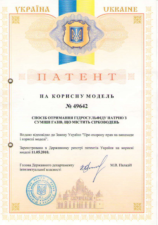 Наукова група має 7 Патентів України. Також є 15 пропозицій для подачі заявок на видачу Патенту України.